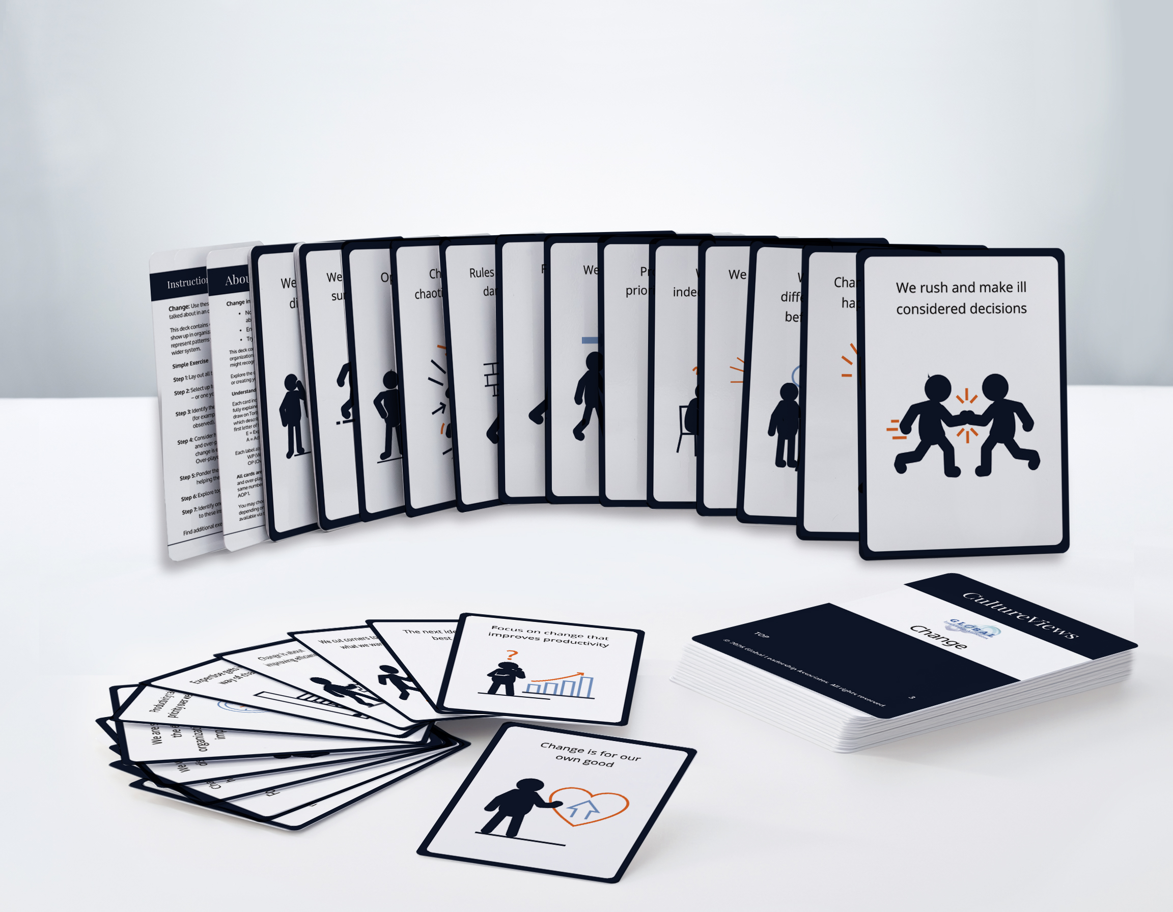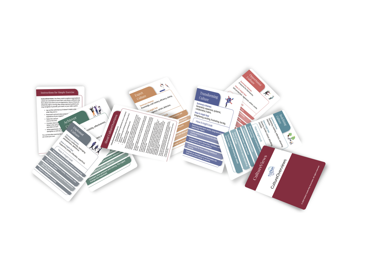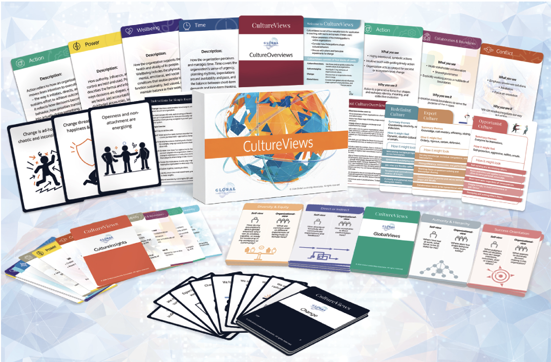 CultureViews makes the hidden patterns of organizational culture visible. Through four decks of versatile cards, CultureViews helps leaders, coaches and teams uncover the thinking frameworks shaping how people act, decide and work together – sparking meaningful conversations, revealing what’s really going on and offering practical experiments for change.